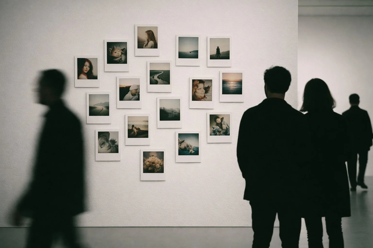 The core of the exhibition is a large-scale photographic installation consisting of a single, continuous wall with a total surface area of approximately 20 m², entirely covered with over 3,000 original instant photographs.